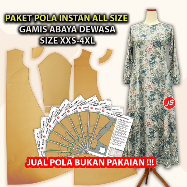 Paket Pola Instan All size Gamis Terusan Abaya Dewasa | Pola Semua Ukuran XXS-4XL
