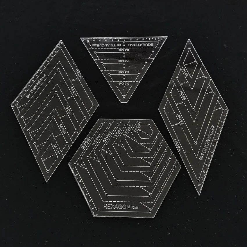Quilting Ruler 4pcs/Penggaris Patchwork Quilting/Penggaris Jahit Pola