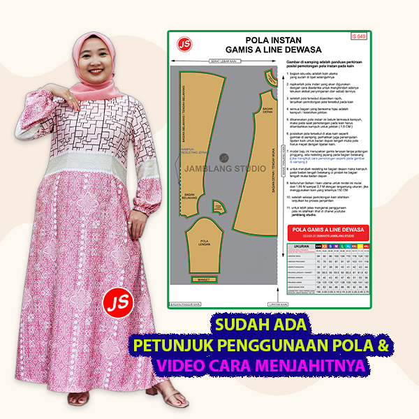 Paket Pola Instan All Size Gamis A Line Dewasa | Pola Semua Ukuran XXS-4XL