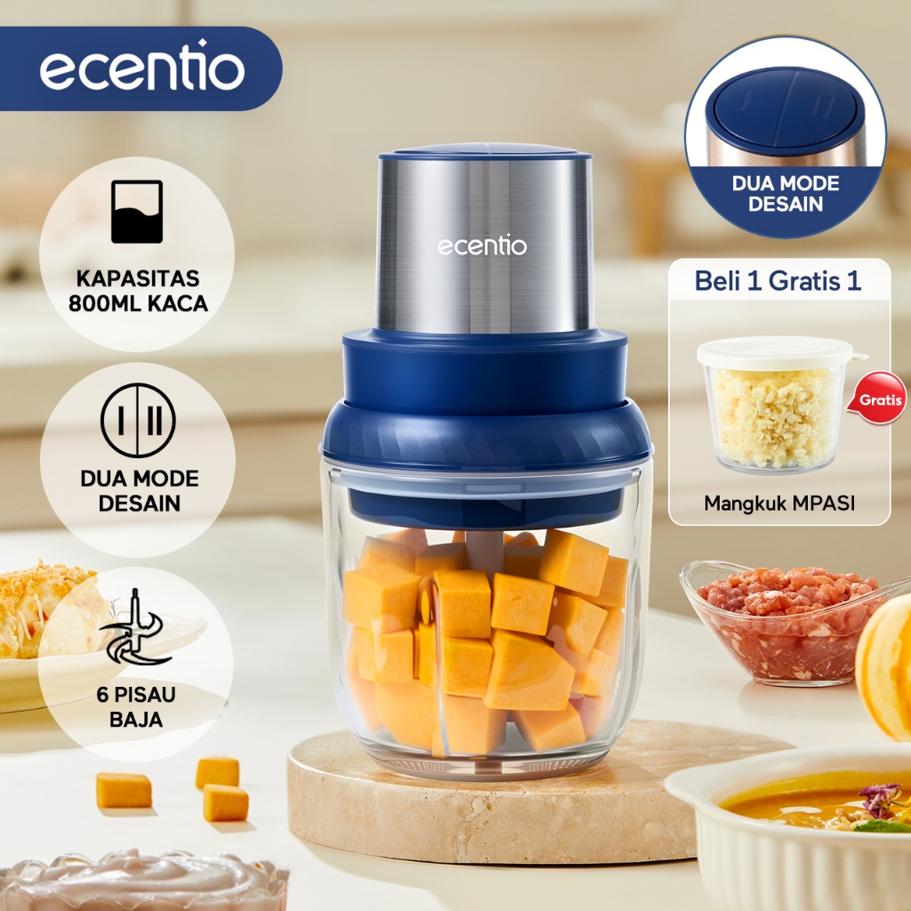 Ecentio Blender Mpasi Kaca Tahan Pecah 800Ml 6 Pisau Kapasitas 2 Speed Mutli Guna Food Processor Giling Daging Garansi 1