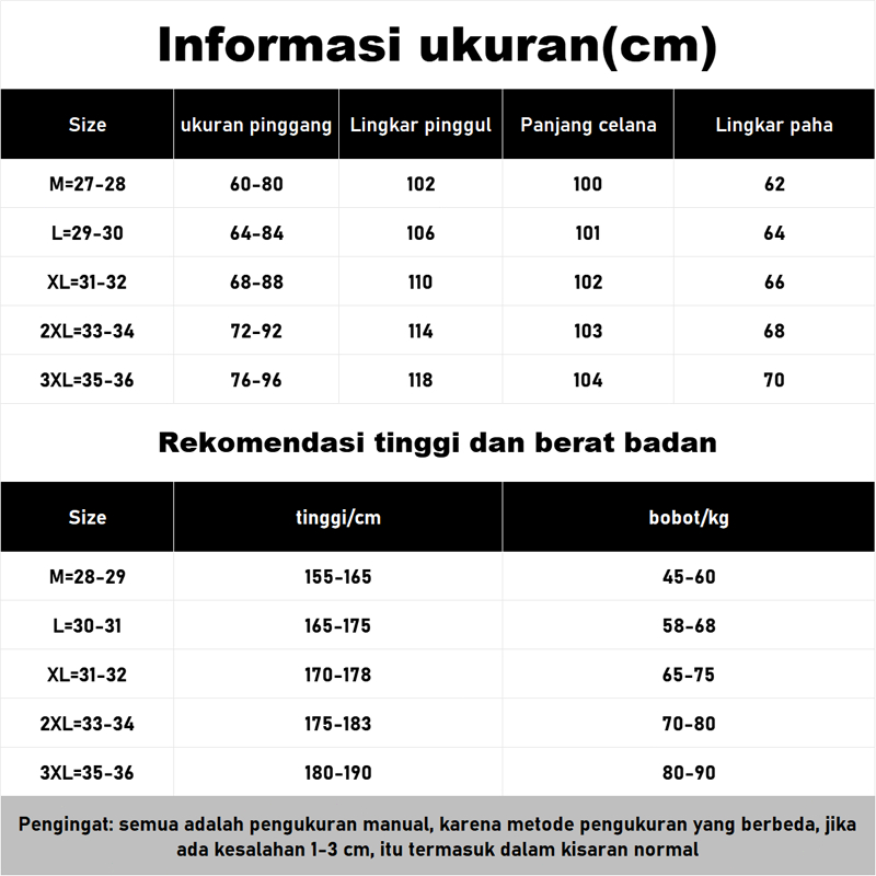 M Cocok=45-60, L Cocok=58-68, XL Cocok=65-75, 2XL Cocok=70-80, 3XL Cocok=80-90