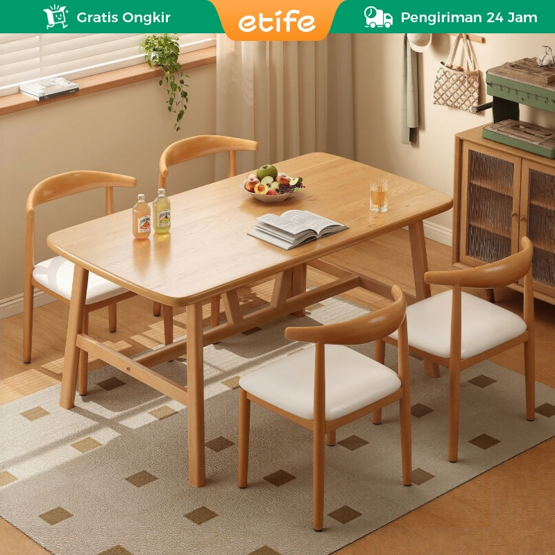 E-Tife Meja Makan Set 4 Kursi Meja Makan Kayu Meja Makan Minimalis