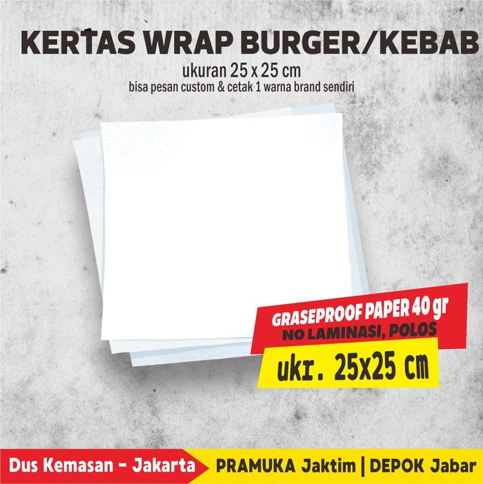 Kertas Roti Burger Kebab Polos Alas Pizza uk 25 cm x 25 cm ( isi 500 pcs /pack) - KERTAS KEBAB POLOS
