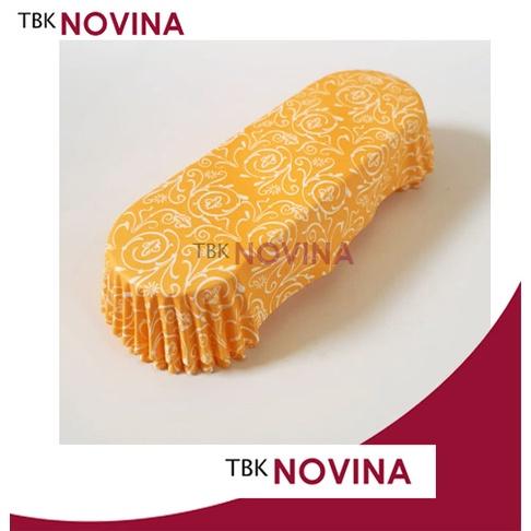 [200pcs] PAPER CUP CASE ROTI OVAL / KERTAS ALAS CUP ROTI LAMINASI / ALAS PANGGANG ROTI KINCIR - OVAL ORANGE BATIK
