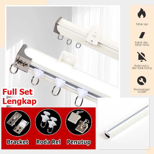 Rel Gorden Plafon 300cm Besi Alkan Hordeng Atas - Batang Gorden Nempel Plafon Rel Alkan Plavon - White 175cm