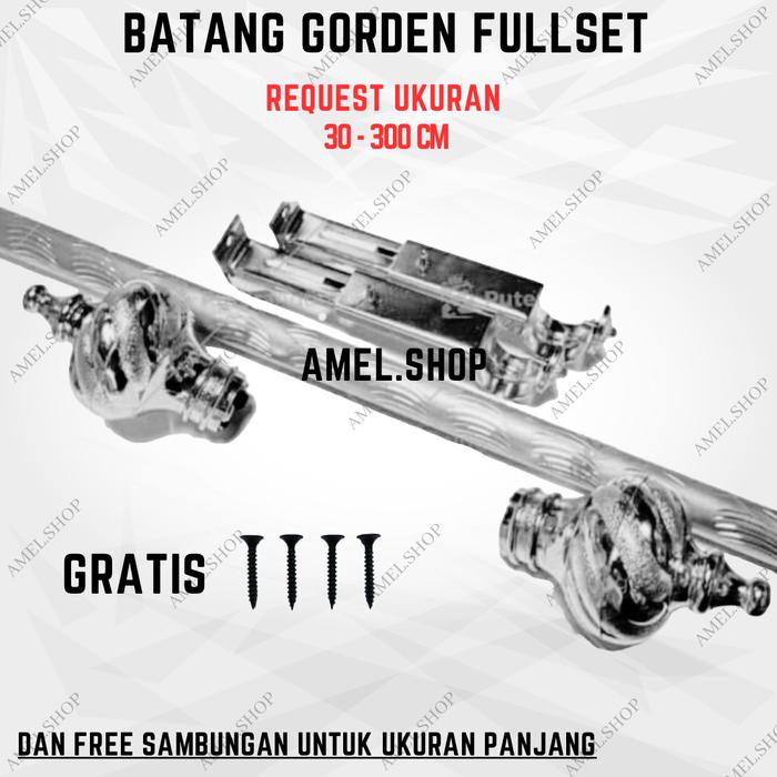 Batang Gorden Abu muda Fullset Request Ukuran 30 - 300cm - AMEL SHOP - Abu muda 30CM
