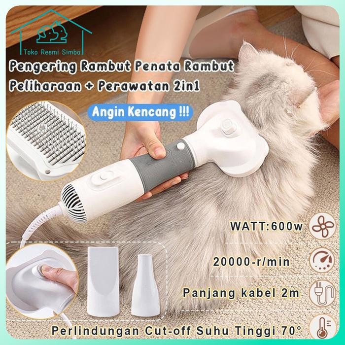 3 In 1Alat Pengering Bulu Kucing Sisir Dan Blower Grooming Hewan untuk Kucing dan Anjing Pet Blower Hair Dryer - Gray