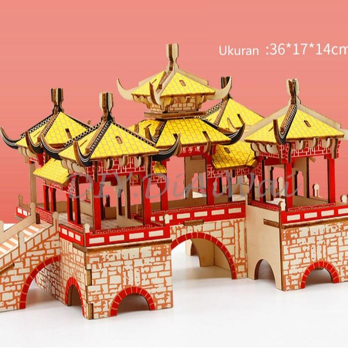 Puzzle 3D DIY bahan kayu model tempat wisata china - WU TING