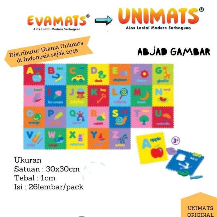 Evamats Unimats Abjad Gambar 30 cm x 30 cm x 1 cm 1 pack isi 26pcs Games Toys Puzzle - Abjad Gambar