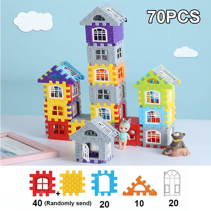 Mainan Edukasi Anak Balok Susun Puzzle/ Imajinasi Bentuk Rumah /70 Pcs Funny Block Puzzle Rumah Block - 70pcs