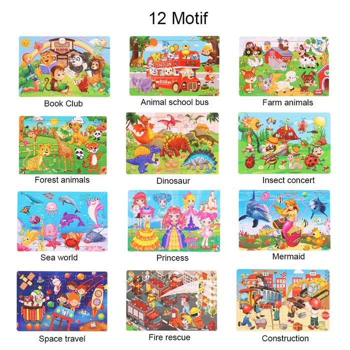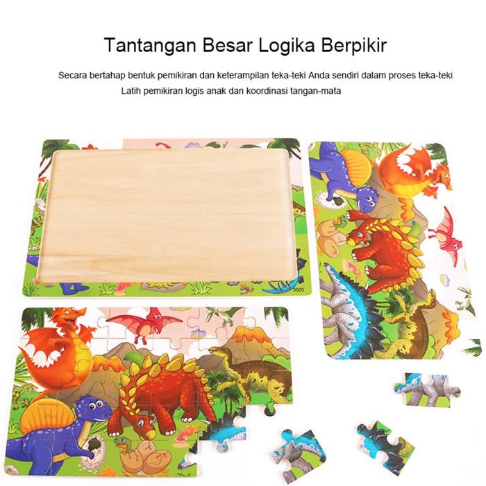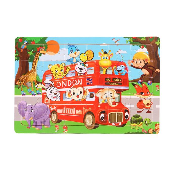 HIPPO LAND Mainan Puzzle Kayu anak kartun lucu Mainan Jigsaw puzzle 267 - 2animal school bus