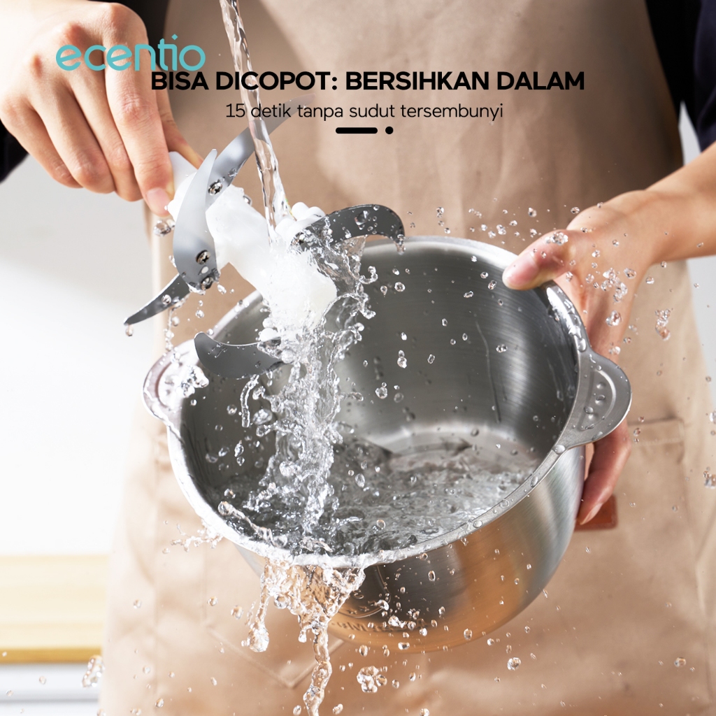 Ecentio Food Chopper Stainless Coper Daging Dan Bumbu 2L Food Processor 6 Mata Pisau Blender 250W Peralatan Dapur Blende