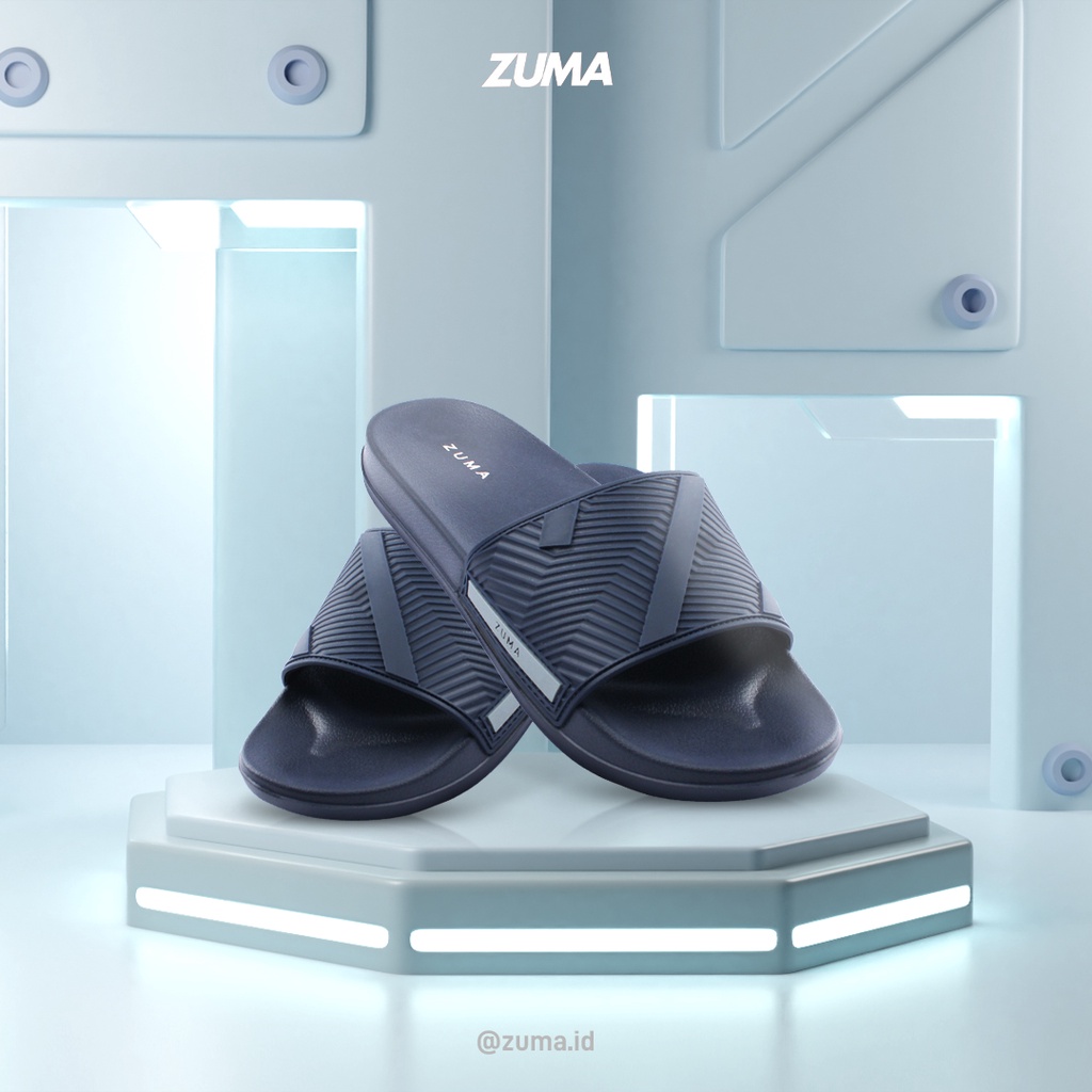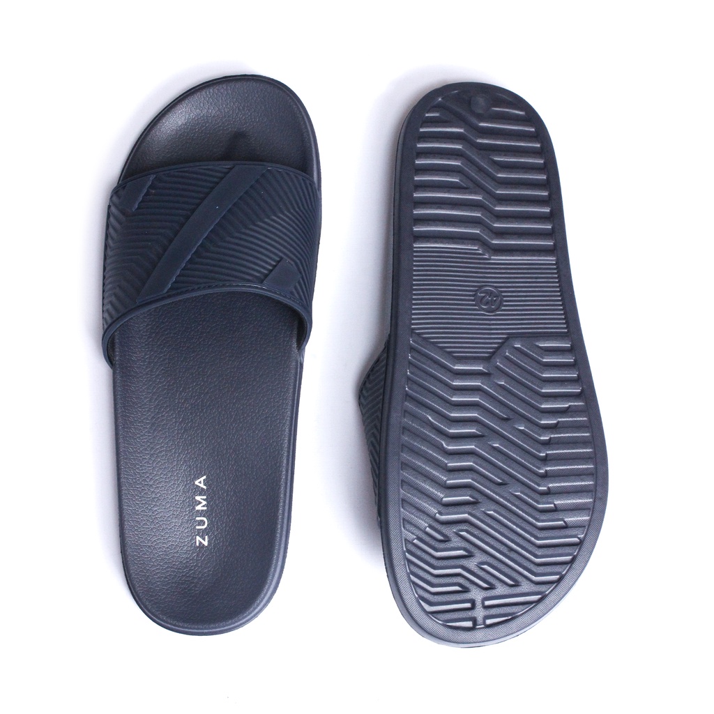 Zuma Men Slide Max 15 Navy, Sandal Slop Pria Karet Slip On Polos, Biru Tua