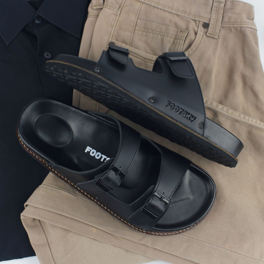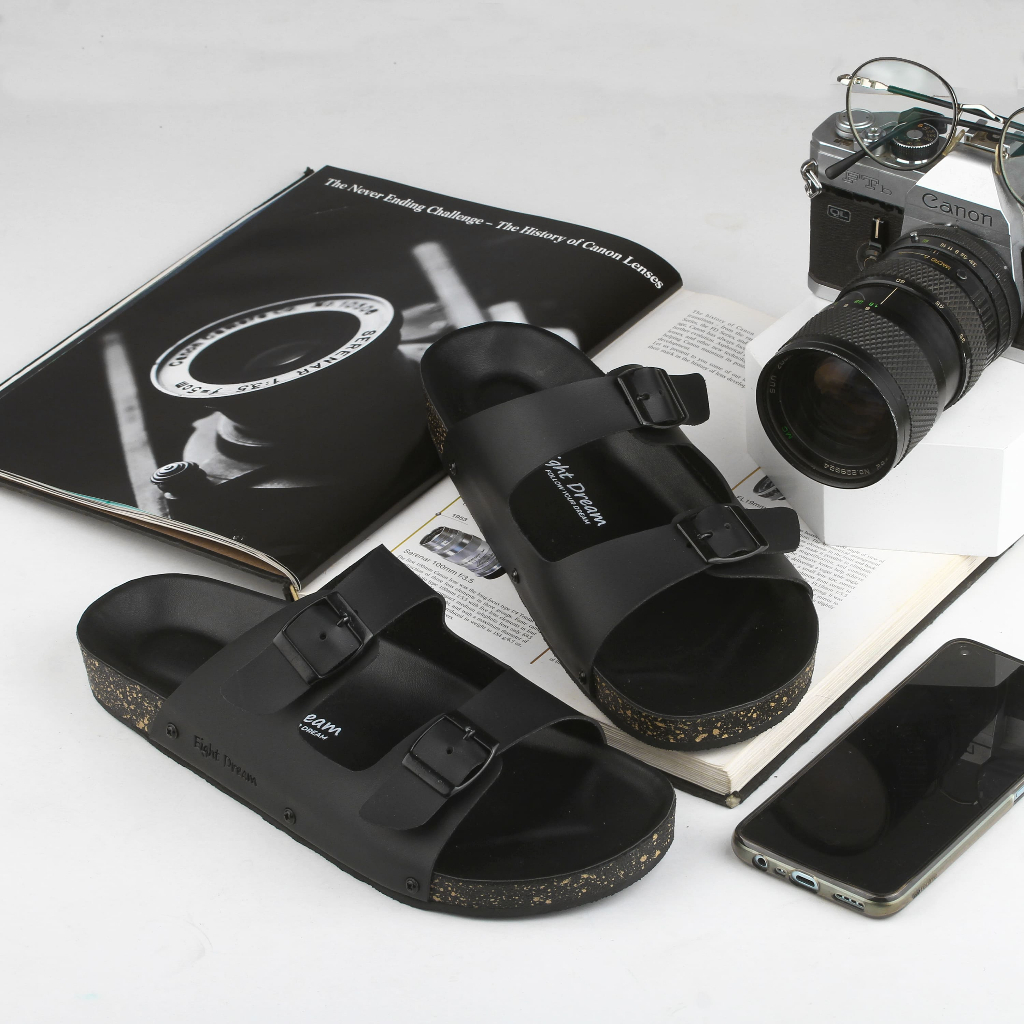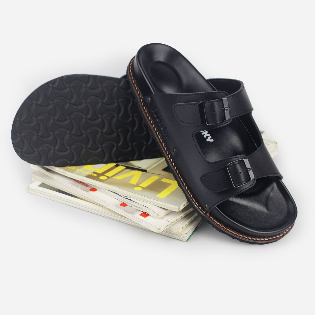 Eight Dream - Shuriken full Black Sandal Slop Kulit Pria