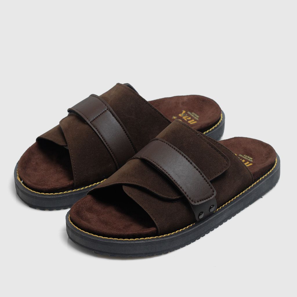 Navara Footwear - Sandal Kulit Casual Pria Full Brown Sandal Slip On AntiSlip | NVR Debonaire 097