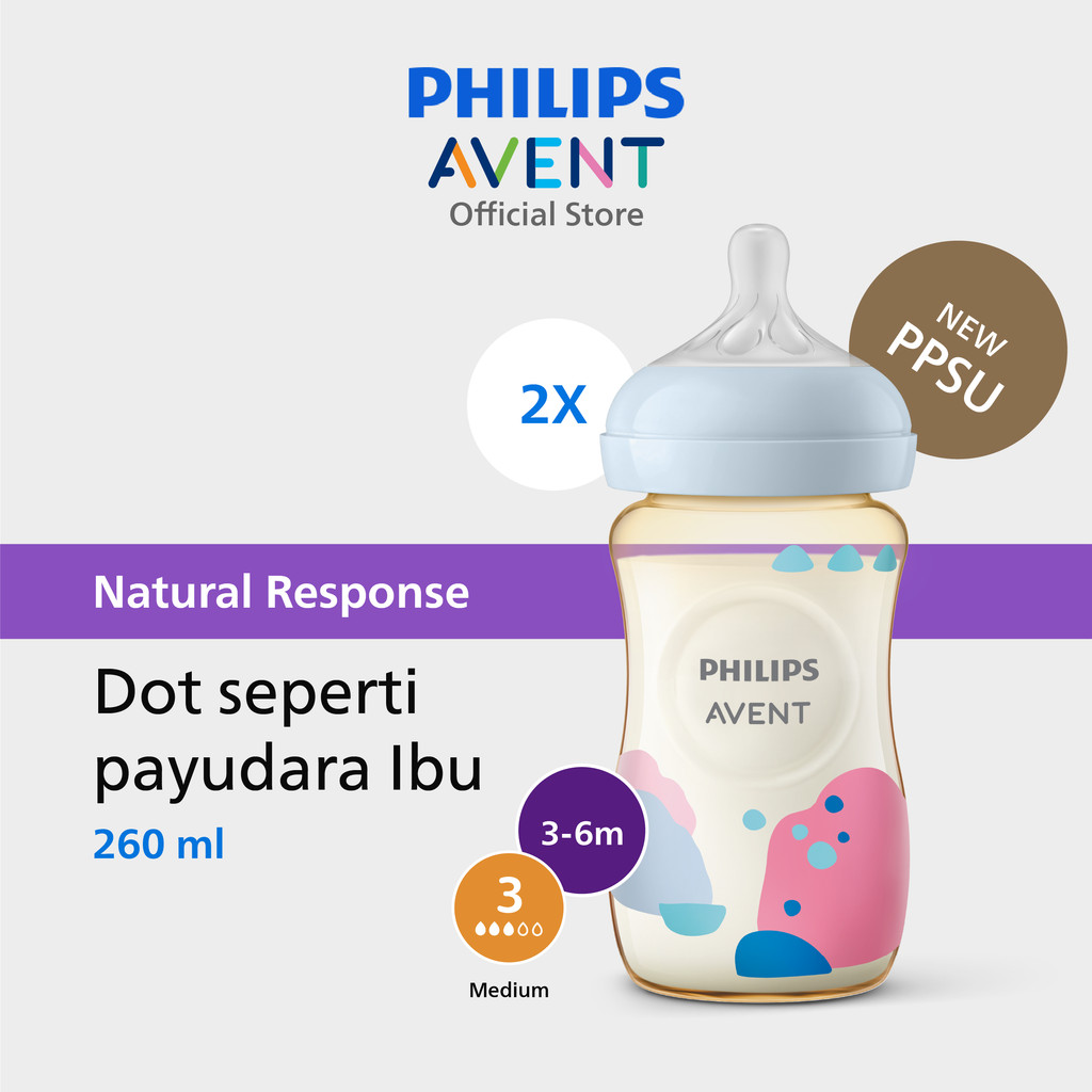Philips Avent | Botol Susu Bayi | PPSU Natural Response | Dot Seperti Ibu & Tahan Hingga 180 C | 260 ml | Twin | SCY943