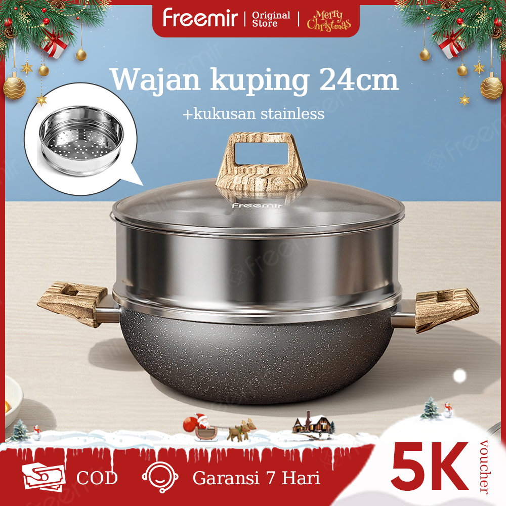 Freemir Original 2In1 Wajan Panci Kuping 24 Cm Anti Lengket + Kukusan Stainless Steel