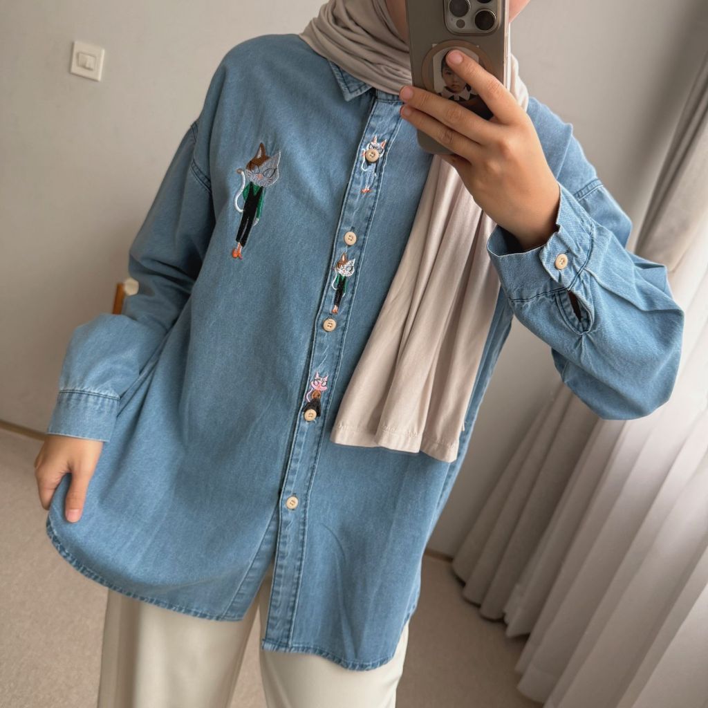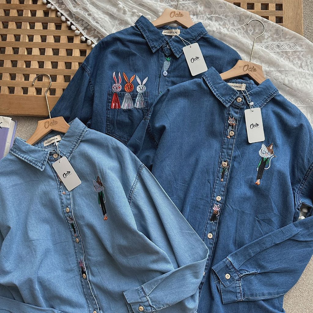 Oclo Alia Shirt Jeans Premium Casual Basic Dailywear Kemeja Wanita Stylish OCL02212