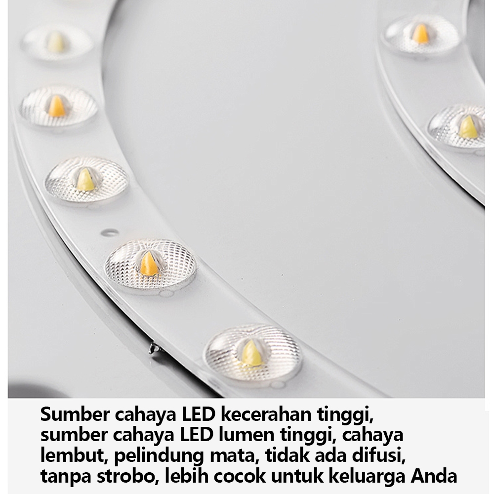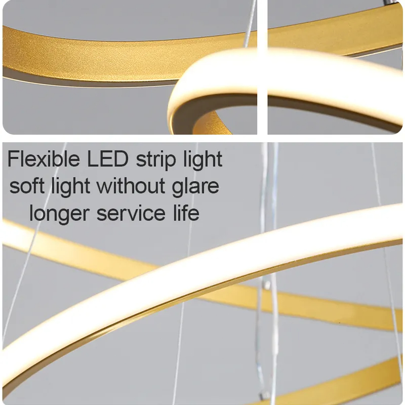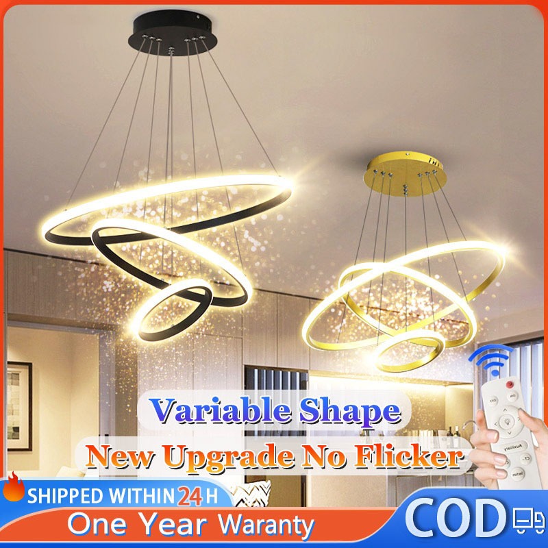 Garansi 1 Tahun Lampu Gantung Led Mewah Modern 3 Cincin Dengan Remote Control Tiga Warna Lampu Plafon Dekoratif Ruang Ta