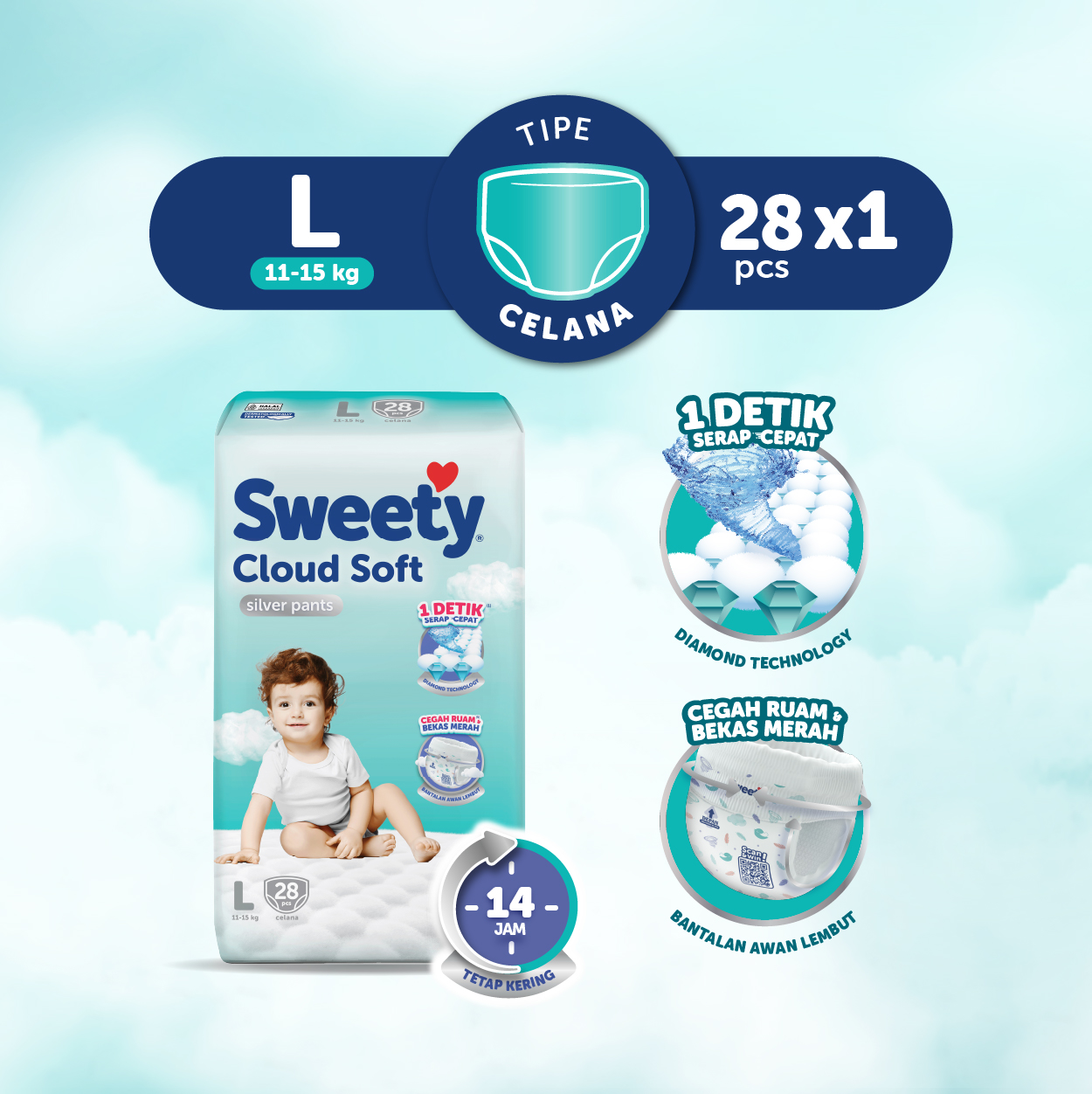 Sweety Silver Pants Cloud Soft L 28s Popok Celana Baby Diapers Special Upcount