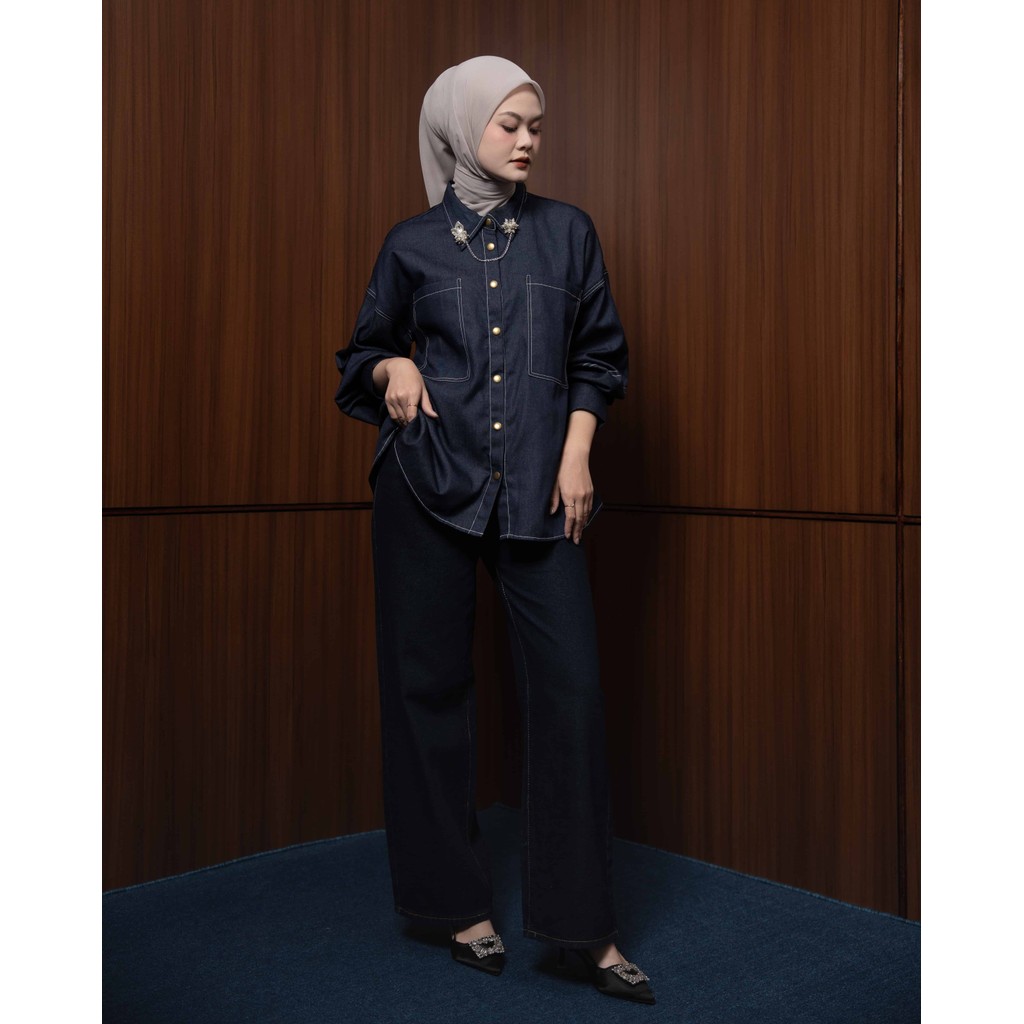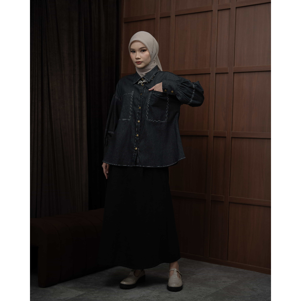 Mayoutfit Emery Shirt Kemeja Denim Basic Wanita Hijabers friendly Oversize