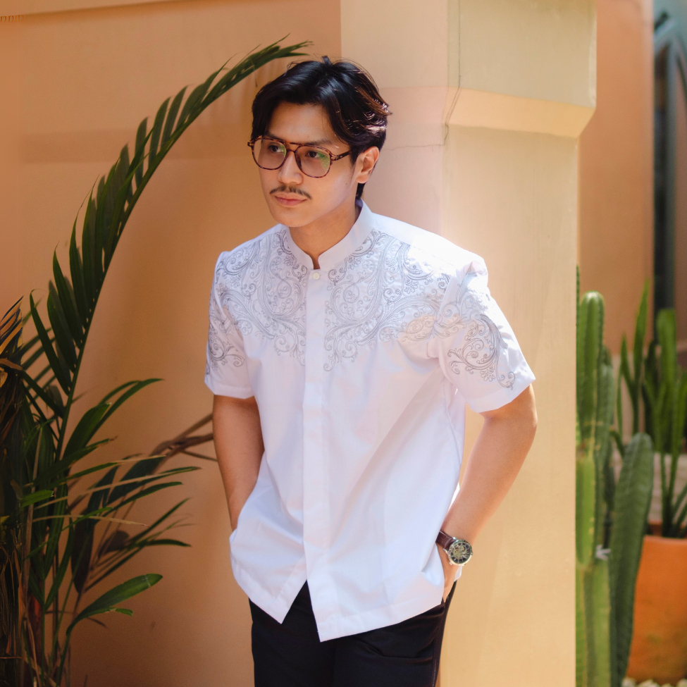 BASTOH Baju Koko Bordir Pria Khayri Lengan Pendek Putih