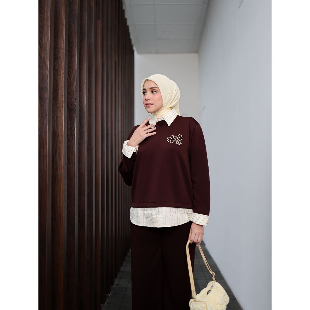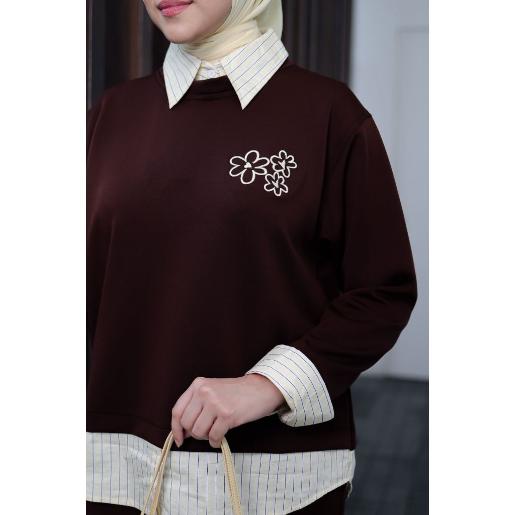 Kheva Mauza Zemira Top Atasan Casual Blouse Kerah Kombinasi Wanita