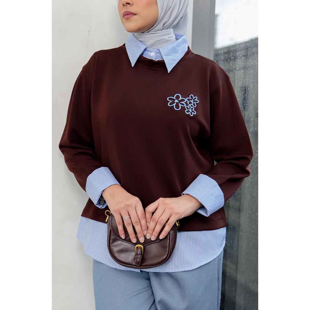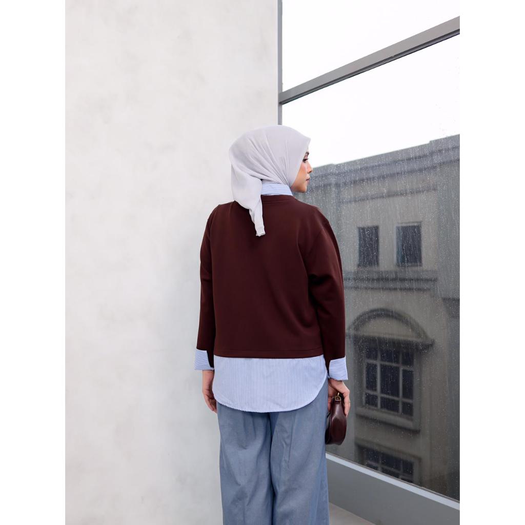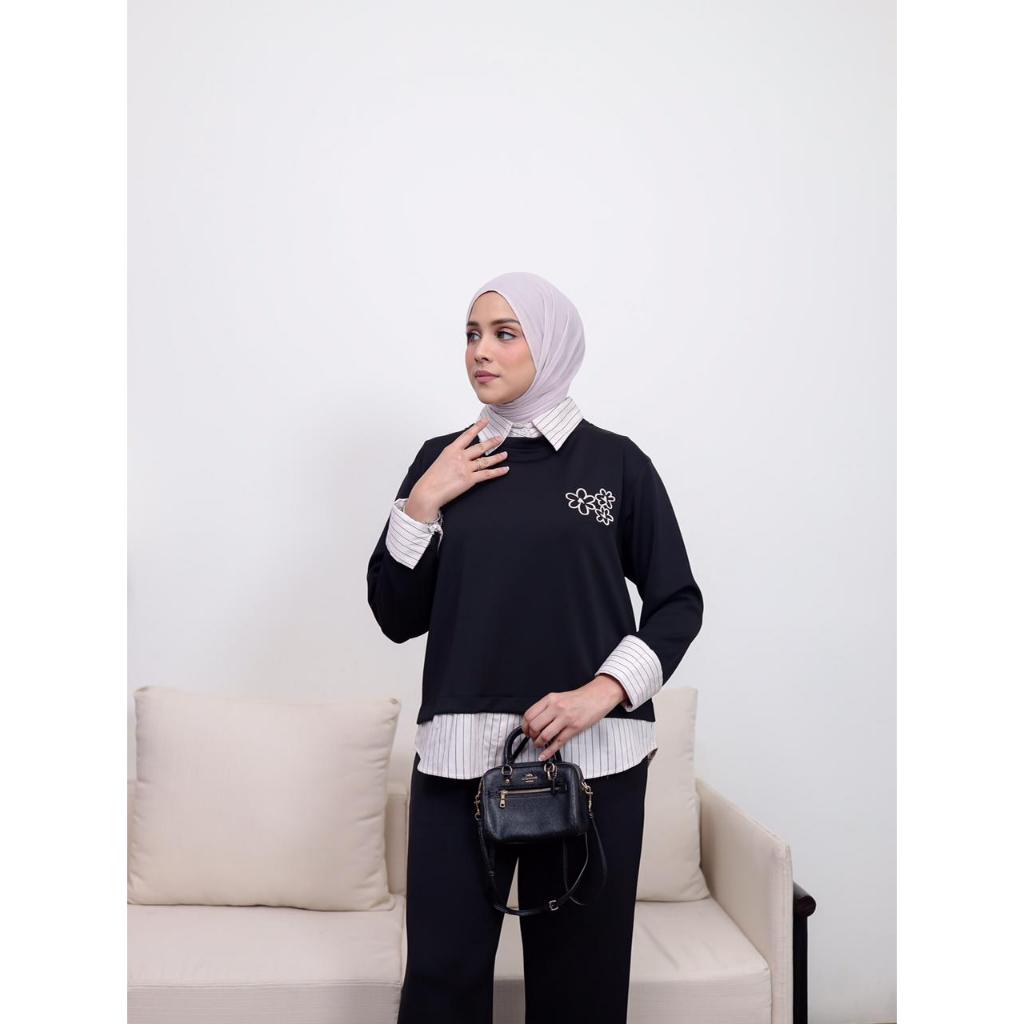 Kheva Mauza Zemira Top Atasan Casual Blouse Kerah Kombinasi Wanita