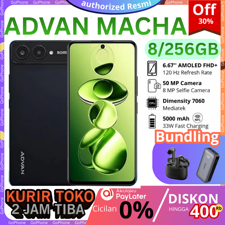 [2 JAM TIBA] ADVAN MACHA Smartphone 5G Dimensity 7060 8GB/256GB UFS 3.1 NFC Android 15 AMOLED 6,67” inch | advan macha