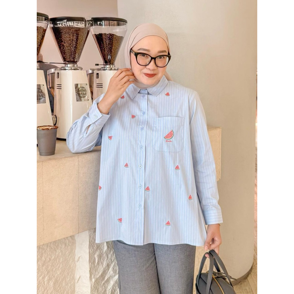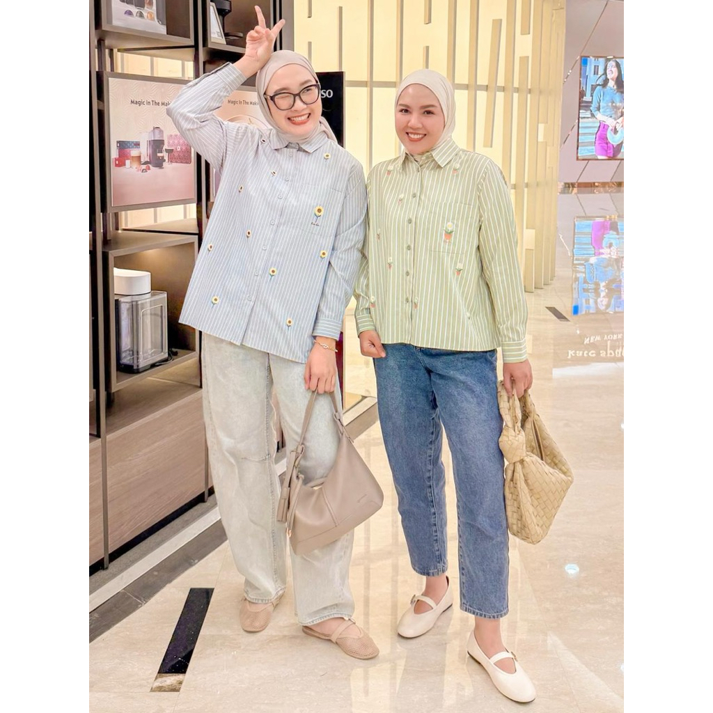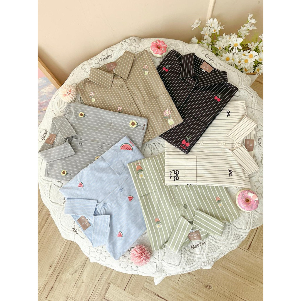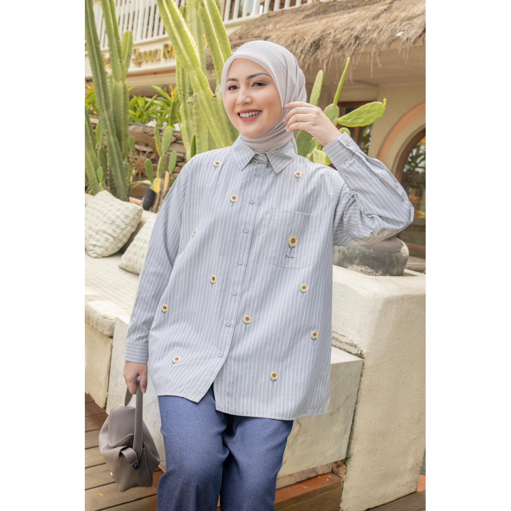 Kienka - Aruna Embroidery Shirt Atasan Kantor Stripe Wanita