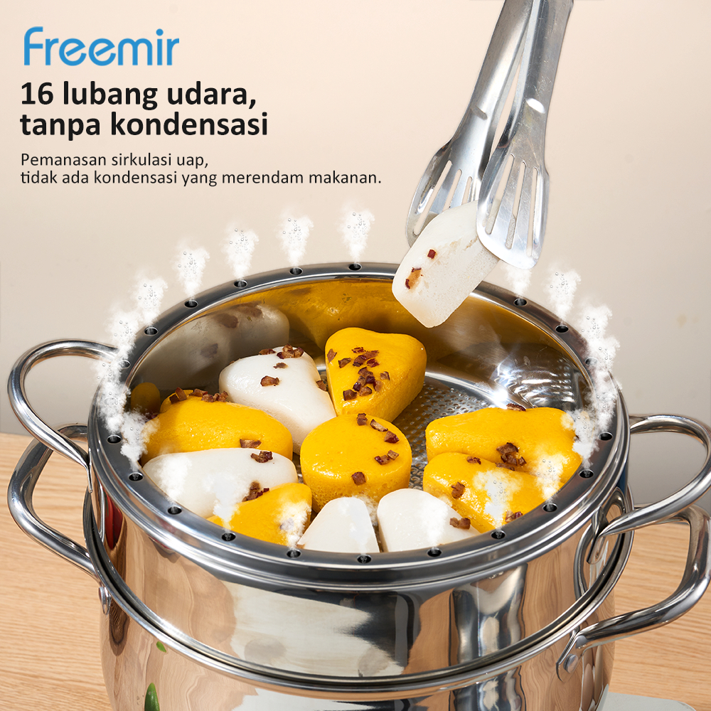 Freemir Electric Panci Susun Kukus Nasi Sus 201 Stainless Steel 25Cm Langseng + Steamer