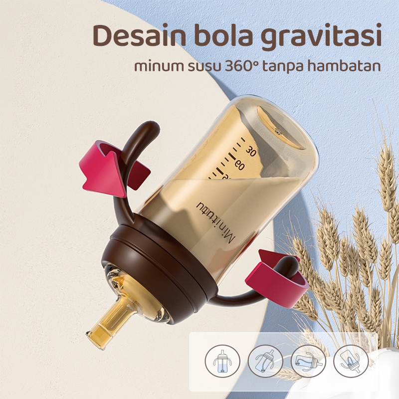 Minitutu Botol Susu Bayi (WIDE NECK) PP Nano Perak Botol Susu 3 IN 1 susu Gravity Ball Anti Kolik 240Ml/300Ml Bebas BPA
