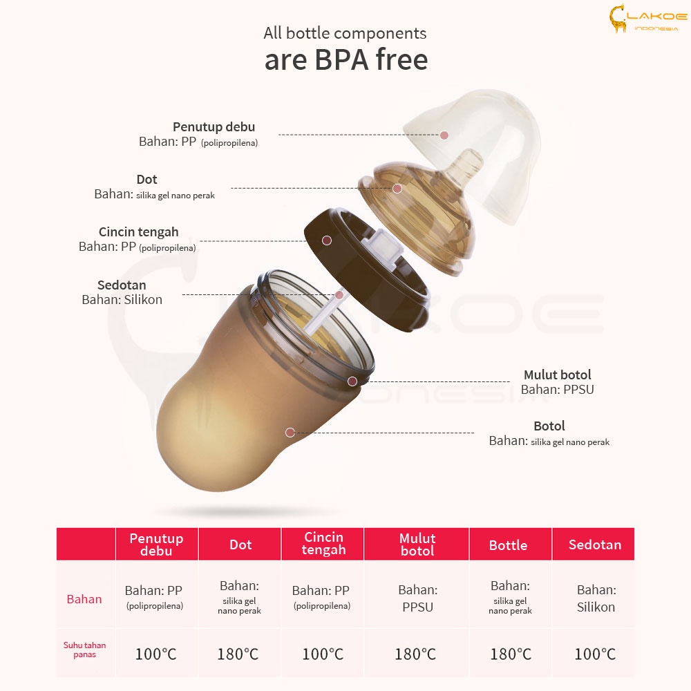 PIKO Bello Botol susu bayi Silikon Leher Lebar (WIDE NECK) Warna Coklat / Botol Bayi dengan sedotan