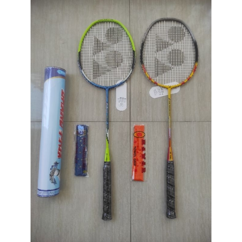 RAKET BADMINTON PAKET LENGKAP HEMAT MURAH dapat 2 raket, 12 kok, tas , 2 grip free packing kayu dan bublewrap