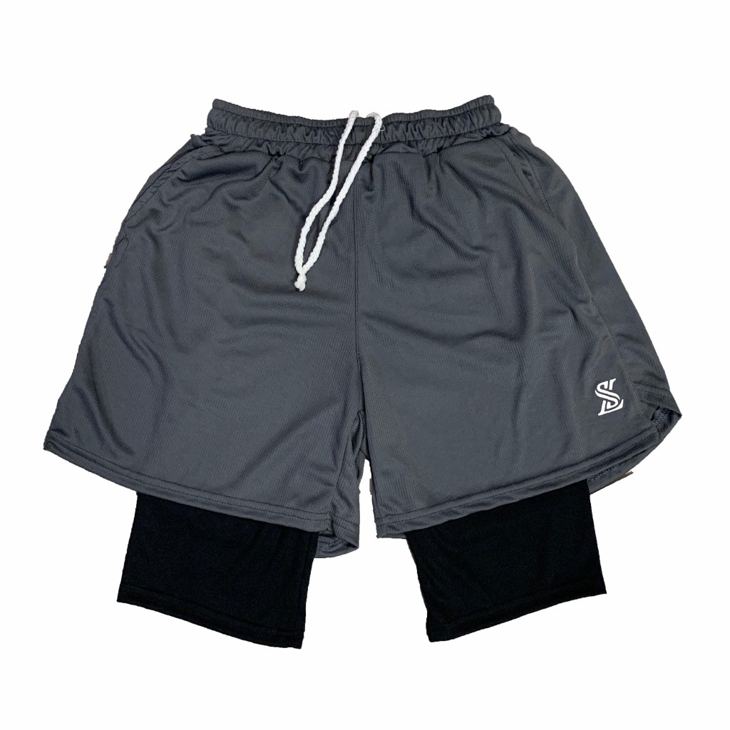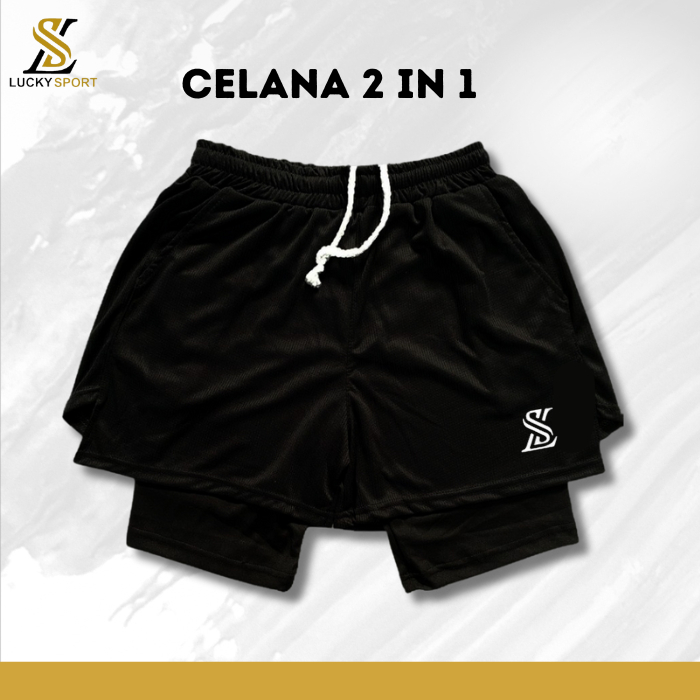 Celana Pendek Olahraga 2 in 1 Pria Wanita Running Srt Joging Gym Lari Fitnes Srty Kompresi Shorts