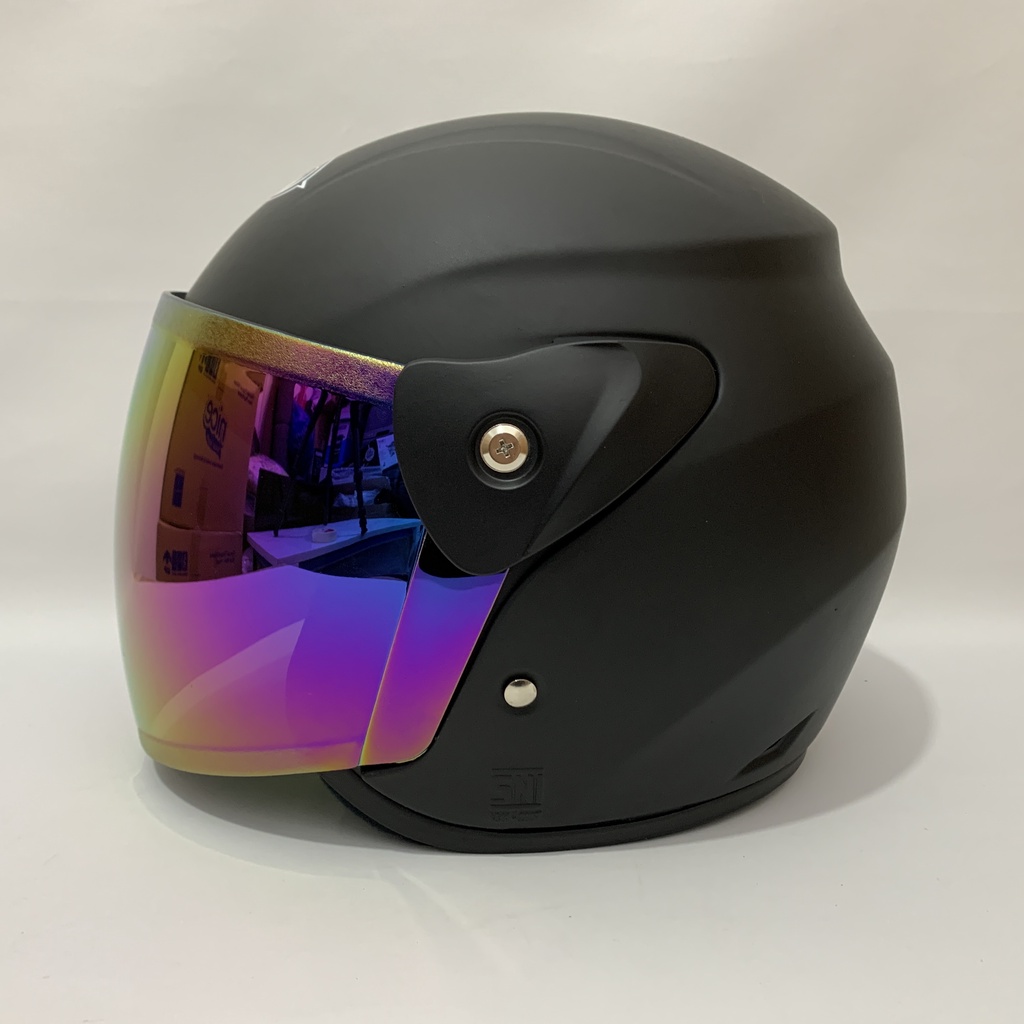 HELM NUVO HITAM DOFF POLOS SOLID ( KACA PELANGI / SILVER / CLEAR / SMOKE ) POLOS HELEM HELMET SNI 4ppi HELMET BXP