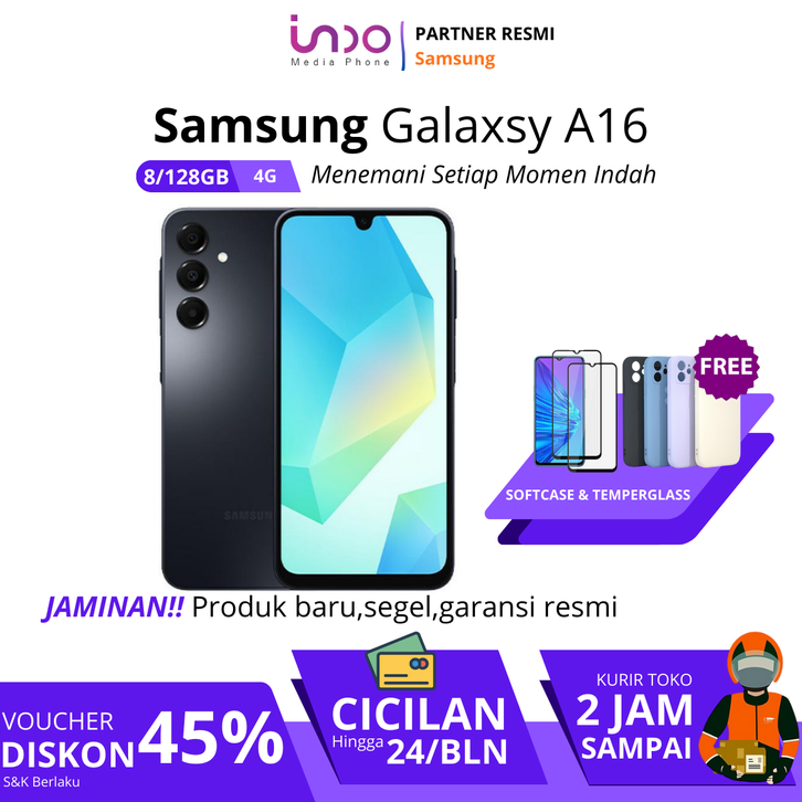 Samsung Galaxy A16 LTE 8/128GB - Black | Smartphone FHD+ | Layar AMOLED | Baterai 5.000 mAh,hp samsung a16