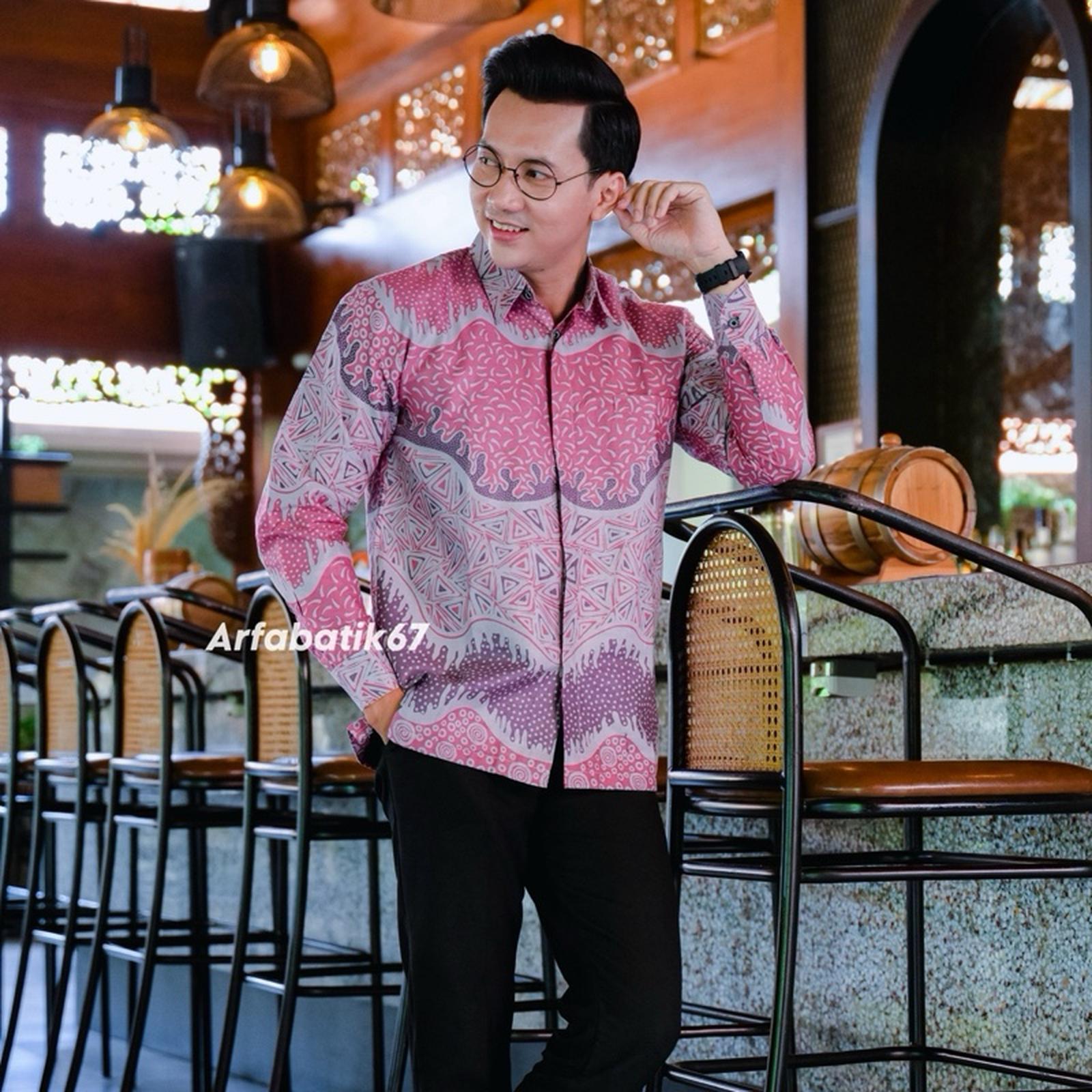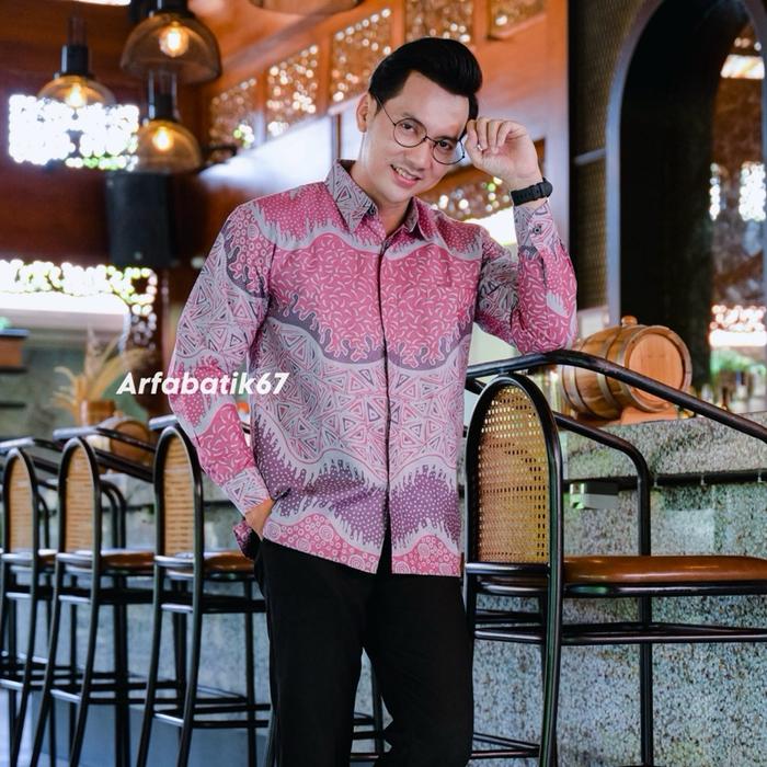 New Dasty pink 3 Negeri Baju batik Pria Lengan panjang dan pendek lapis furing