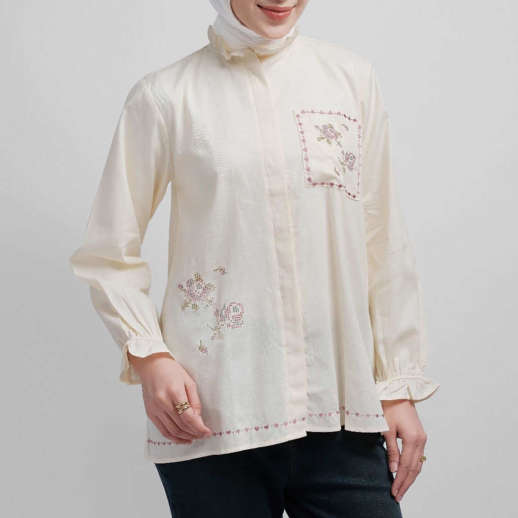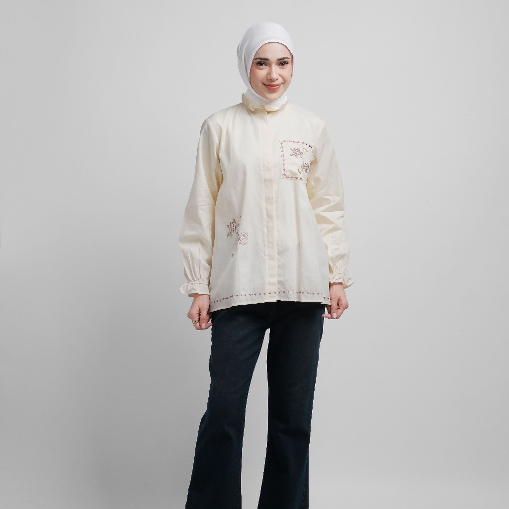 GIYOMI ID - Helen Blouse Blouse Wanita Blouse Bahan Textured Cotton Baju Atasan Wanita