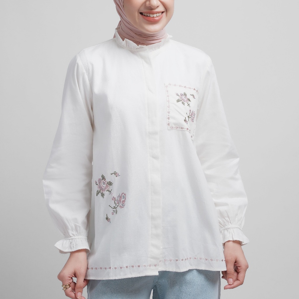 GIYOMI ID - Helen Blouse Blouse Wanita Blouse Bahan Textured Cotton Baju Atasan Wanita