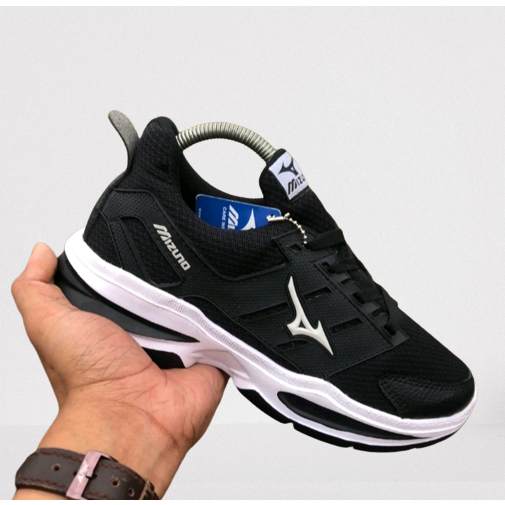 Sepatu Mizuno Pria Model Running Hitam Putih - Sepatu Olahraga Volly - Spatu Sneakers Pria Wanita Original Terbaru