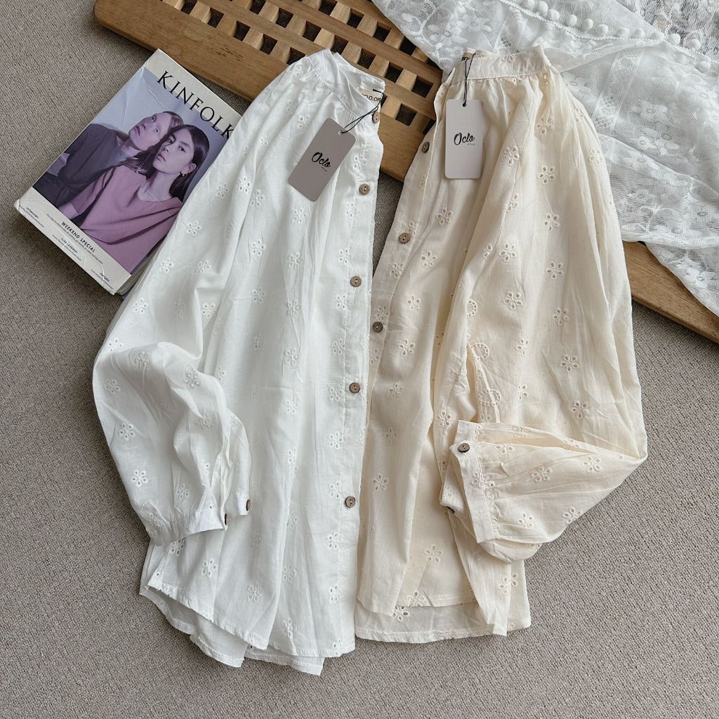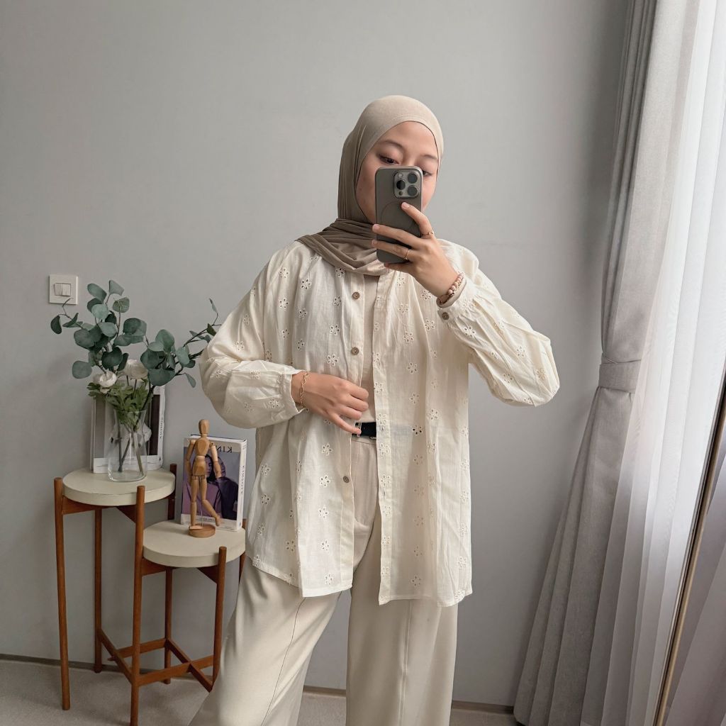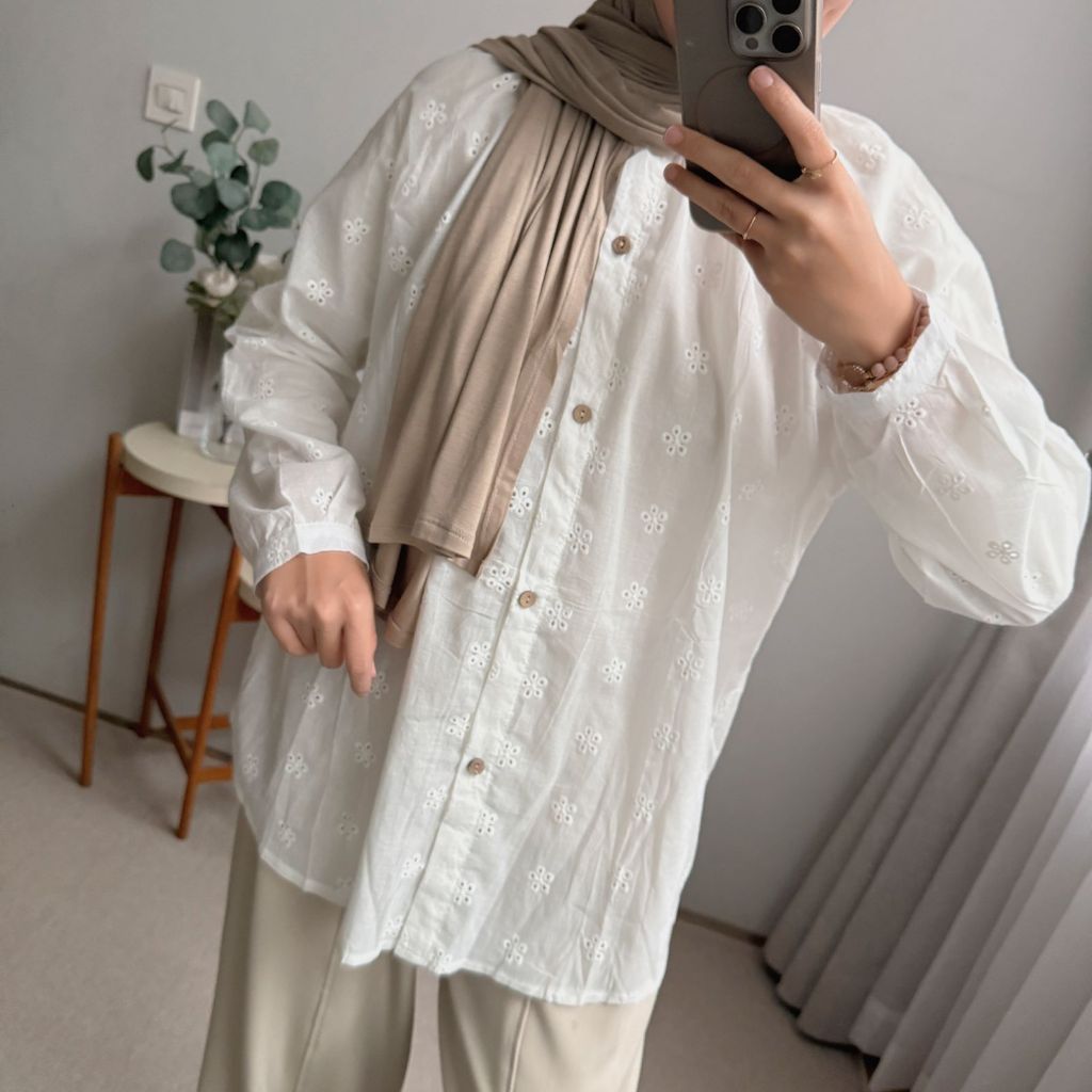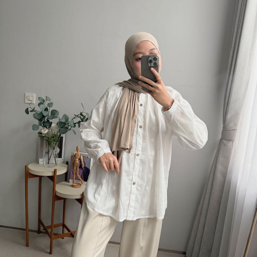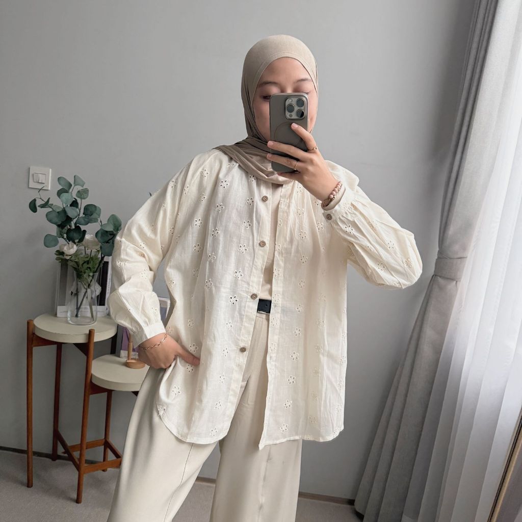 Oclo Zifana Shirt Casual Wanita Premium Lengan Panjang Daily Katun Bolong OCL01589