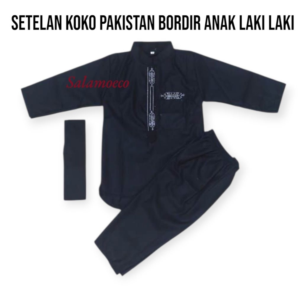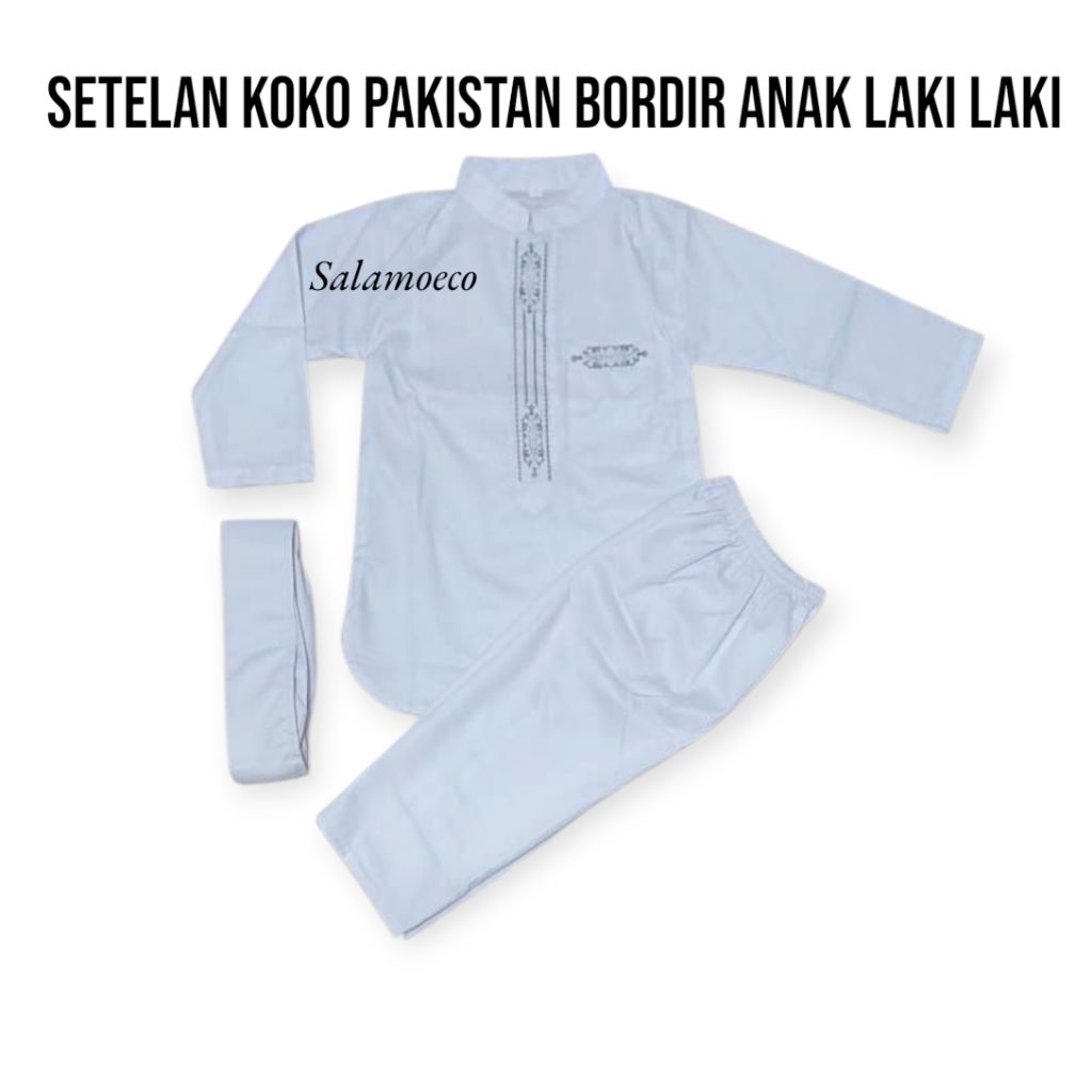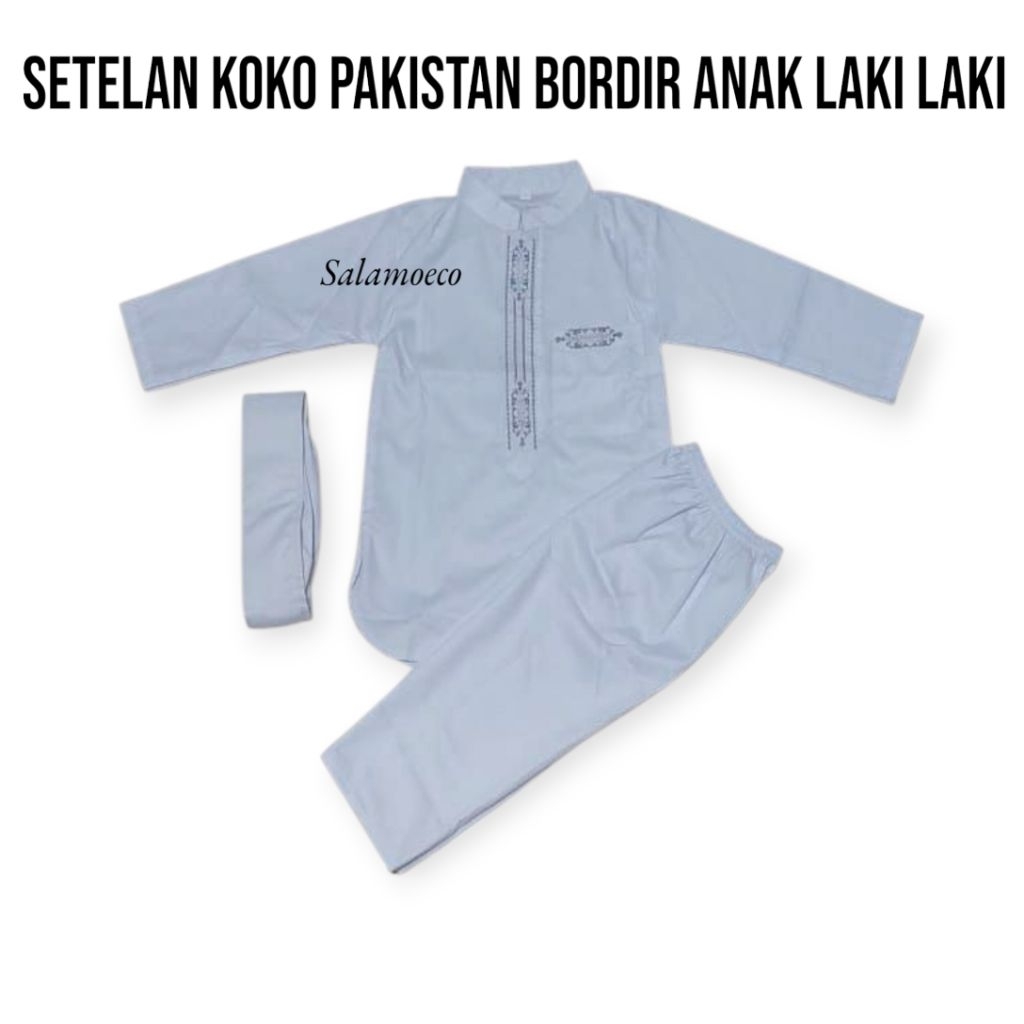 Stelan Koko Kurta/Pakistan Anak Laki Laki Lengan Panjang Bordir Bahan Katun Toyobo Premium Size 1-12Tahun/Pakaian Muslim