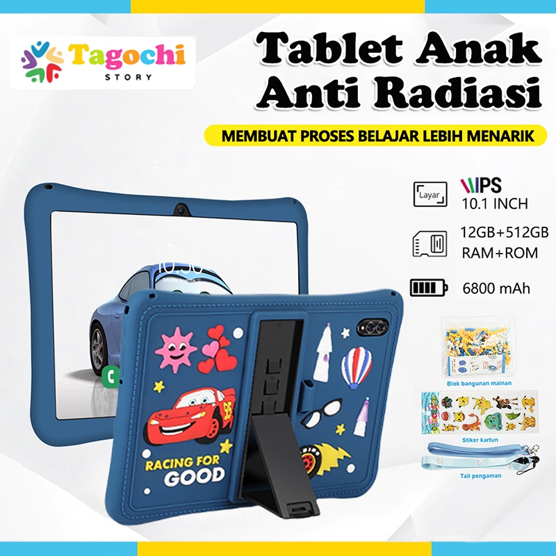 TAGOCHI Tablet Anak RAM 12GB ROM 512GB Touch Screen 10.1inch Android 14 Kids Tablet 2 Kamera Whatsapp Play Store Bisa WiFi Tablet PC Baru
