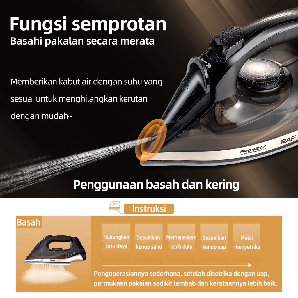 [READY STOCK] RAF Setrika Uap Optimal Seri Terbaru 1374 : Setrika Uap Low Watt & Tapak Keramik Non-Stick - Cangkir grat