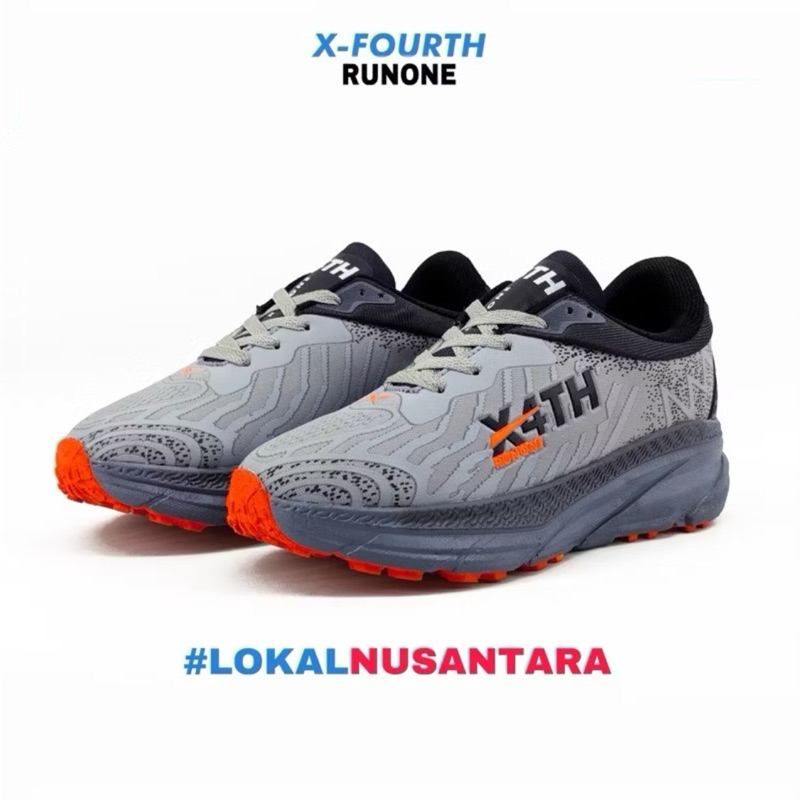 X-Fourth Runone Grey Black - Sepatu Olahraga Running Lari Pria Wanita Sneakers Kasual Senam Gym Trialrun X-FOURTH PREMIU
