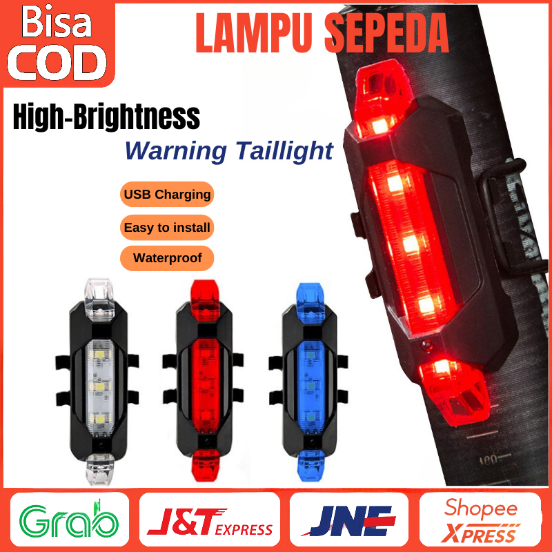 Lampu Sepeda LED USB Rechargeable Anti Air 4 Mode Aksesoris Sepeda Lampu Keamanan Lampu Belakang