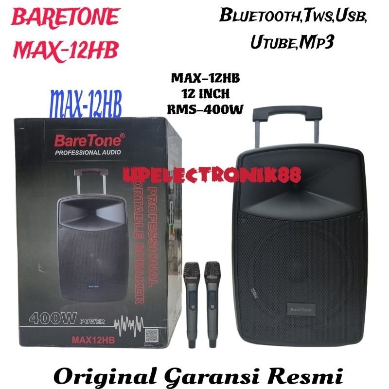 Speaker Portable Wireless 12 Inch Baretone MAX12HB 400 Watt Original