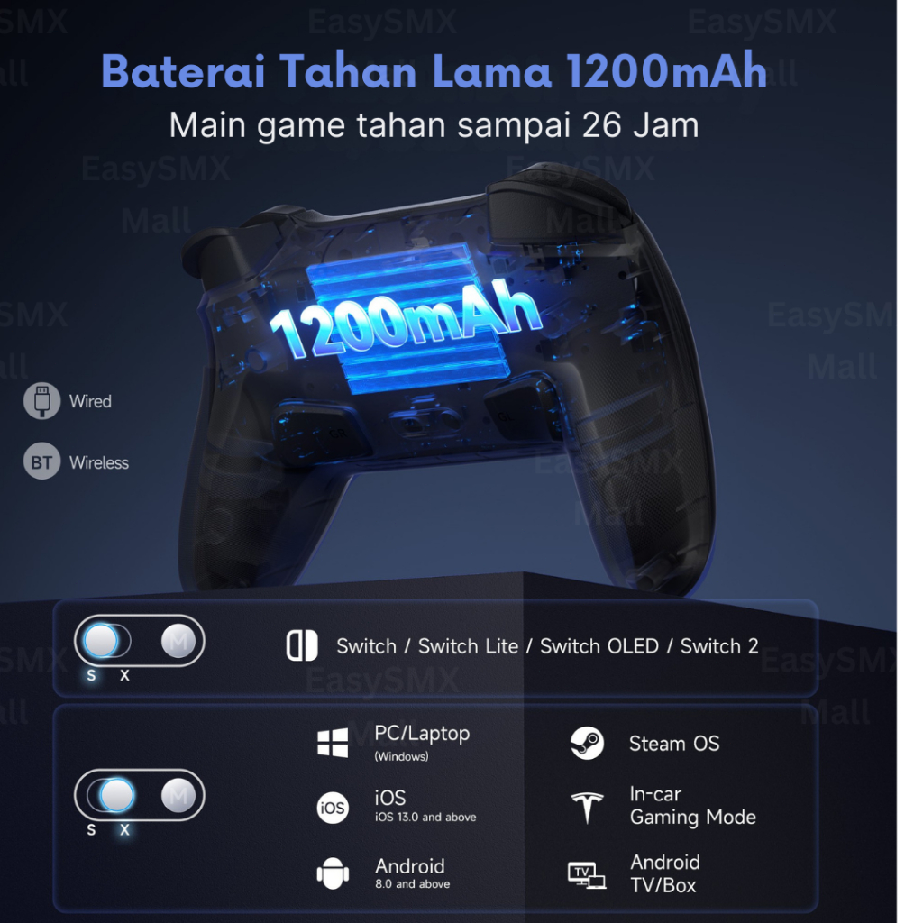 EasySMX S10 Wireless Gamepad TMR Joystick & Mechanical Button Compatible Switch 2 Switch 1 PC Android iOS Support NFC & HD Rumble (Garansi 1 Tahun)
