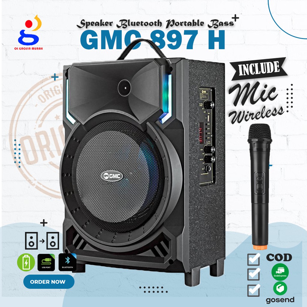 Speaker Bluetooth Portable GMC 897H 8 inch SNI Karaoke Termasuk Mic Wireles Super Bass